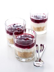 - Die Amarettini-Kekse zerkleinern und die ganzen Zutaten dann schichtweise in Mini-Gläser einfüllen.
